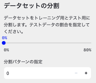 次に,データセットの分割は0%にしましょう。←ここは後で説明します。
